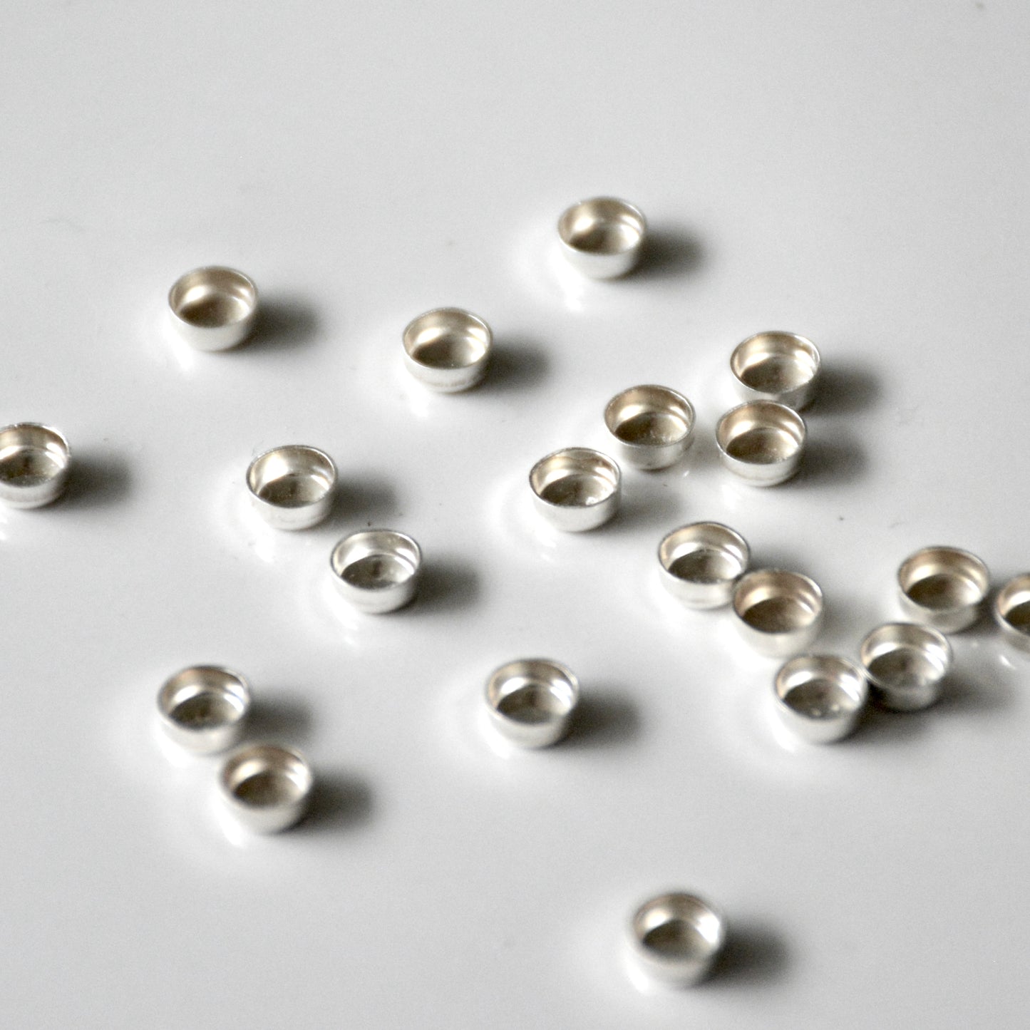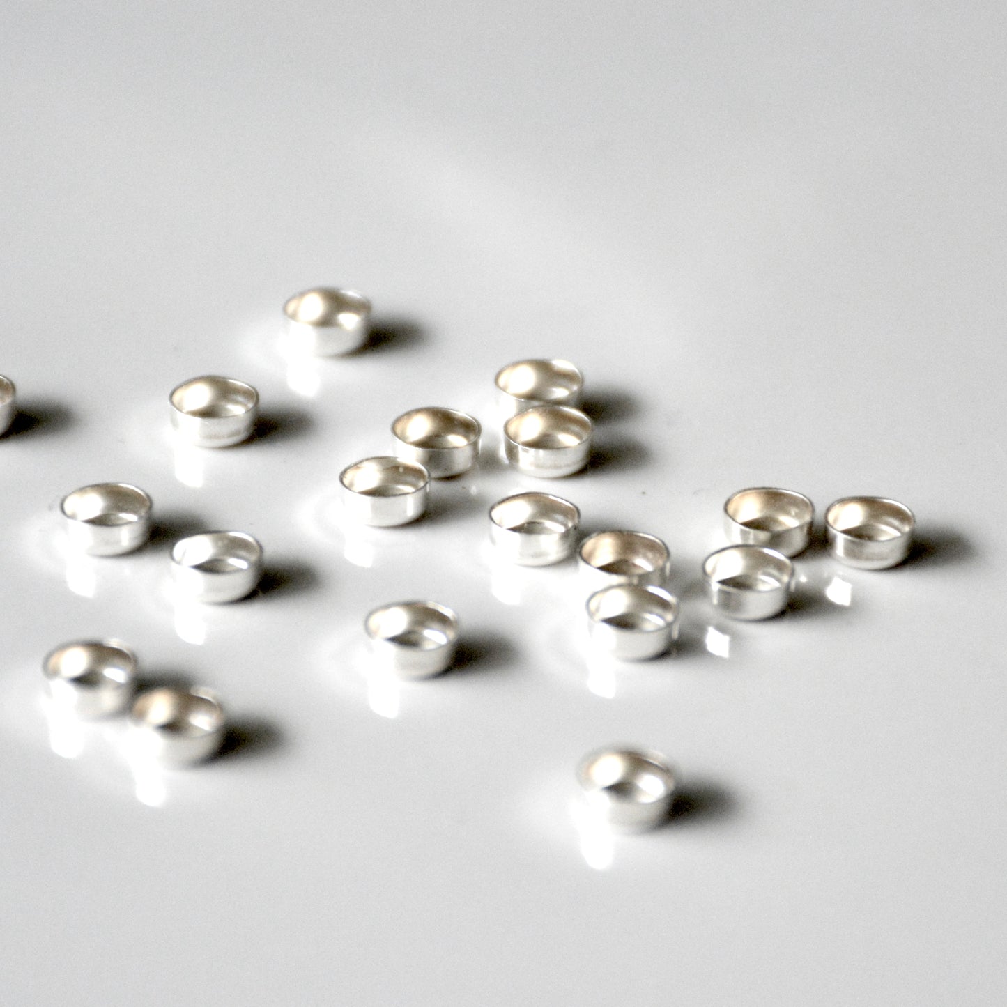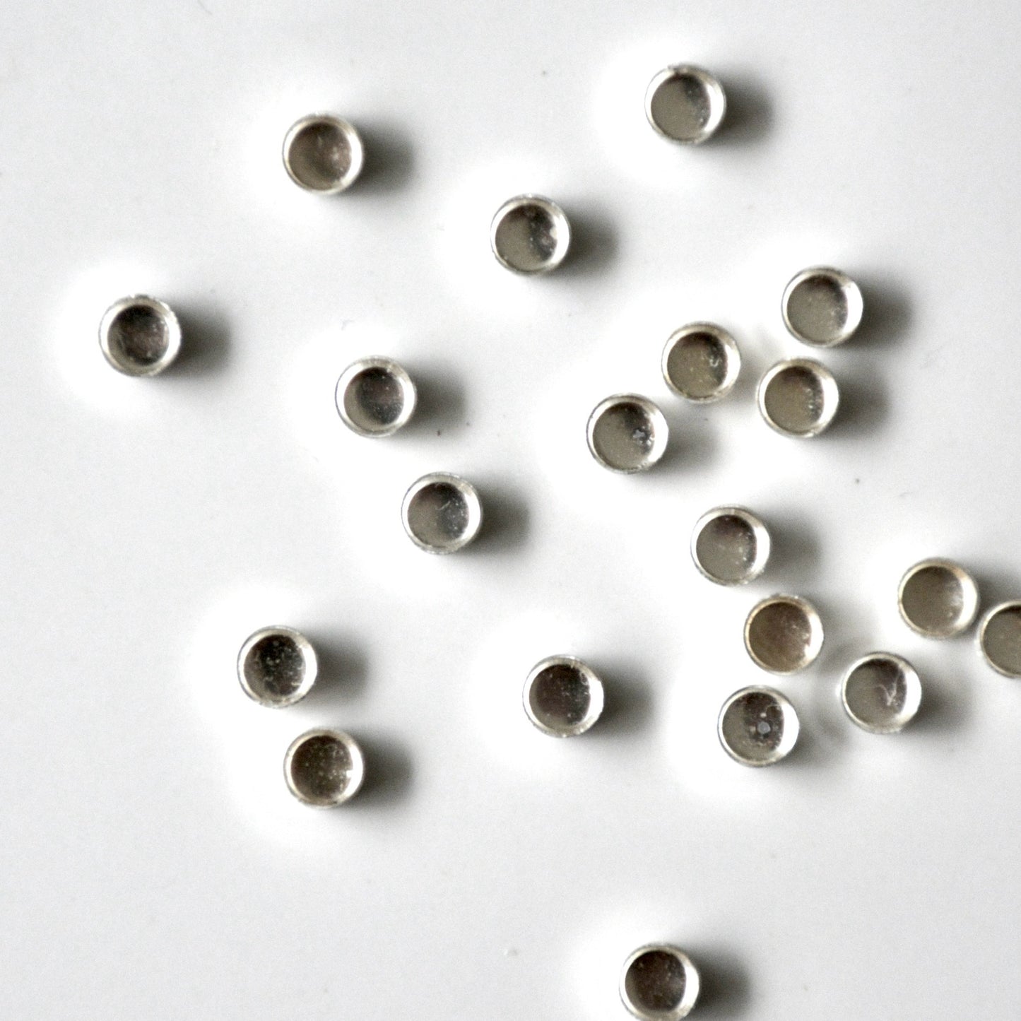 Eine runde Brühschale mit einer Größe von 4 mm. Die Brühschale besteht aus Sterlingsilber und hat einen glatten Rand.