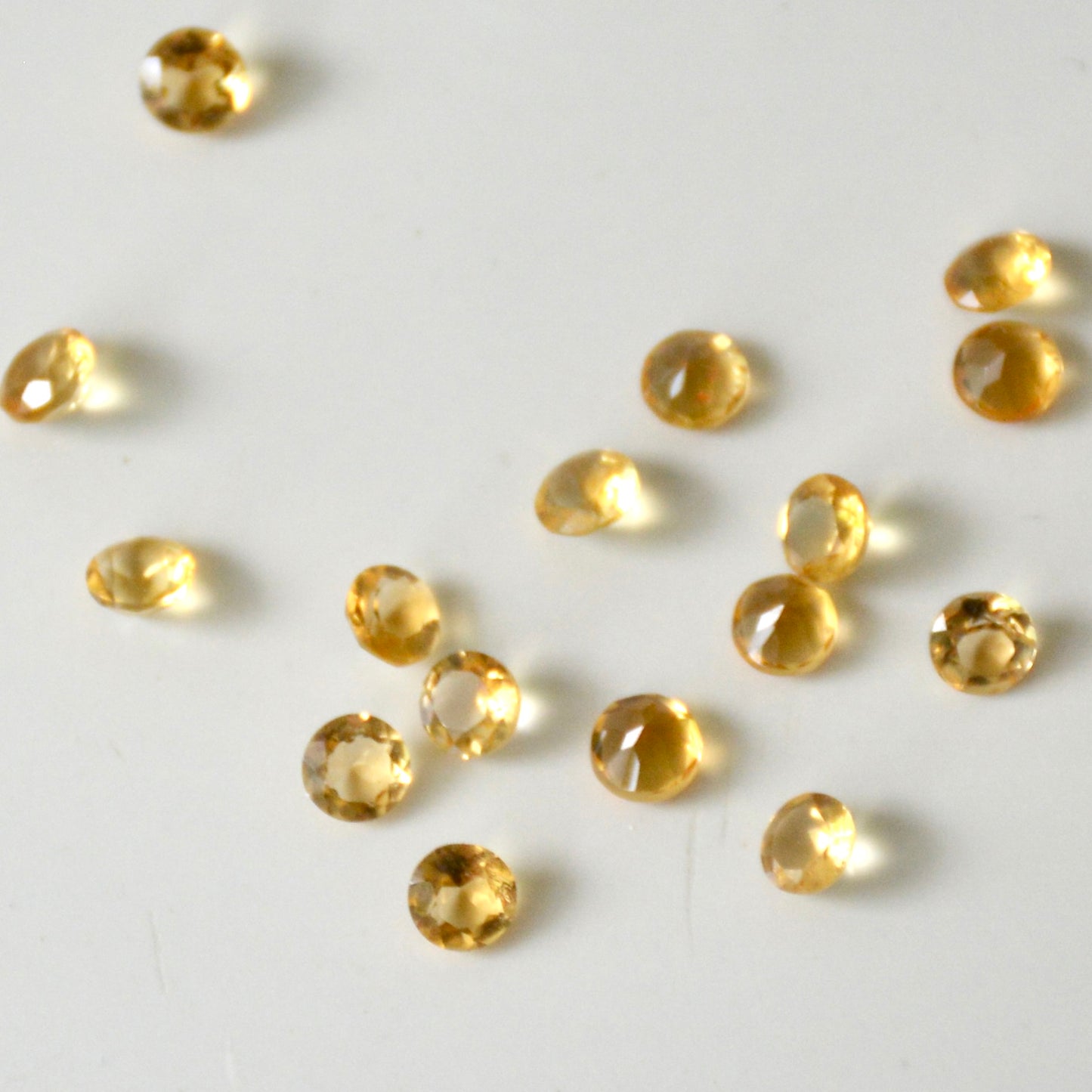 Deze facetsteen is gemaakt van golden citrien. De steen heeft een warme gele kleur en mooie fonkel door de slijping. De steen is rond van vorm en 4 mm groot.